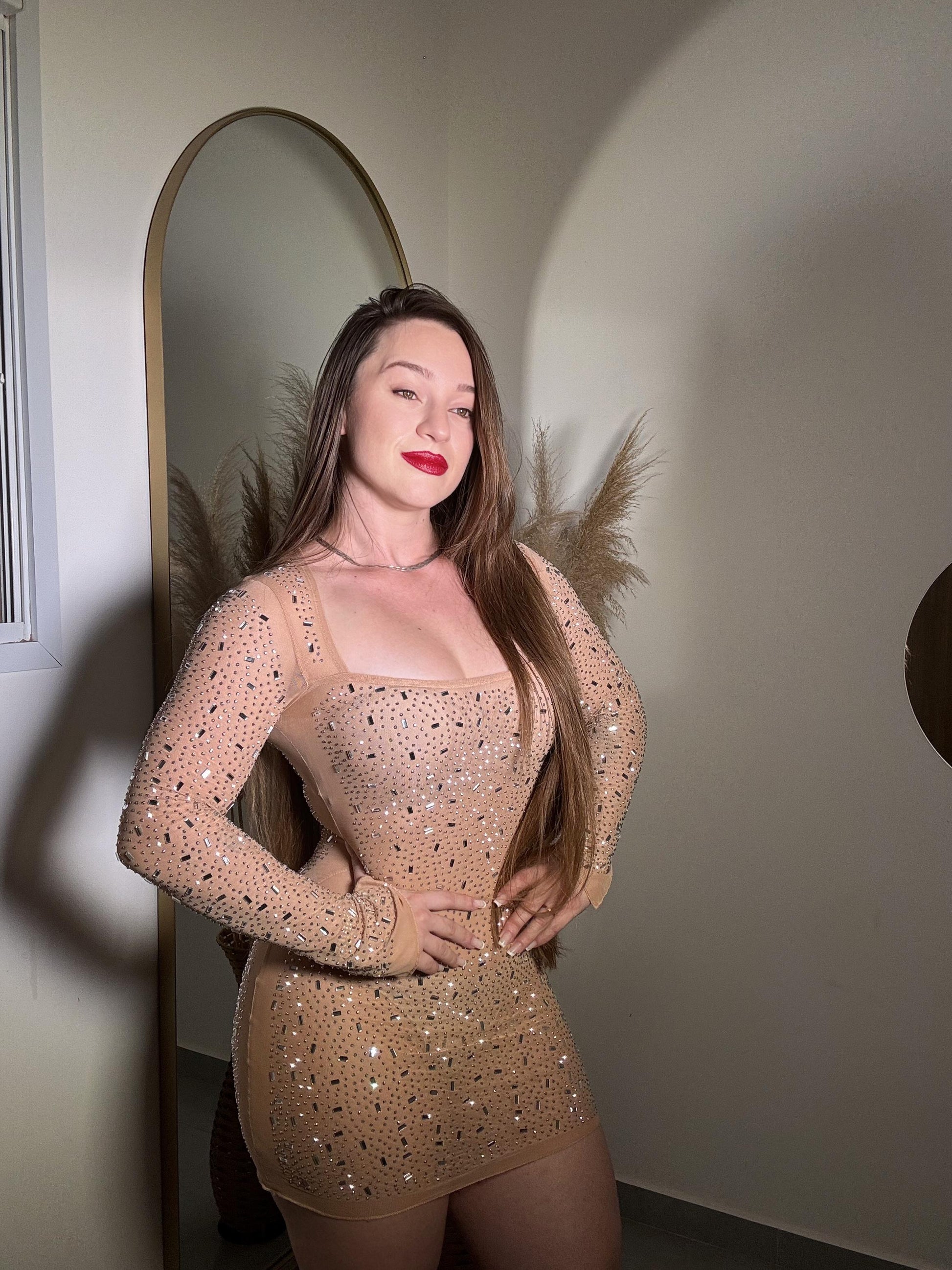 El vestido corto brillante de manga larga es un minivestido diseñado para deslumbrar, perfecto para mujeres que buscan un look bonito, sensual y lleno de estilo.